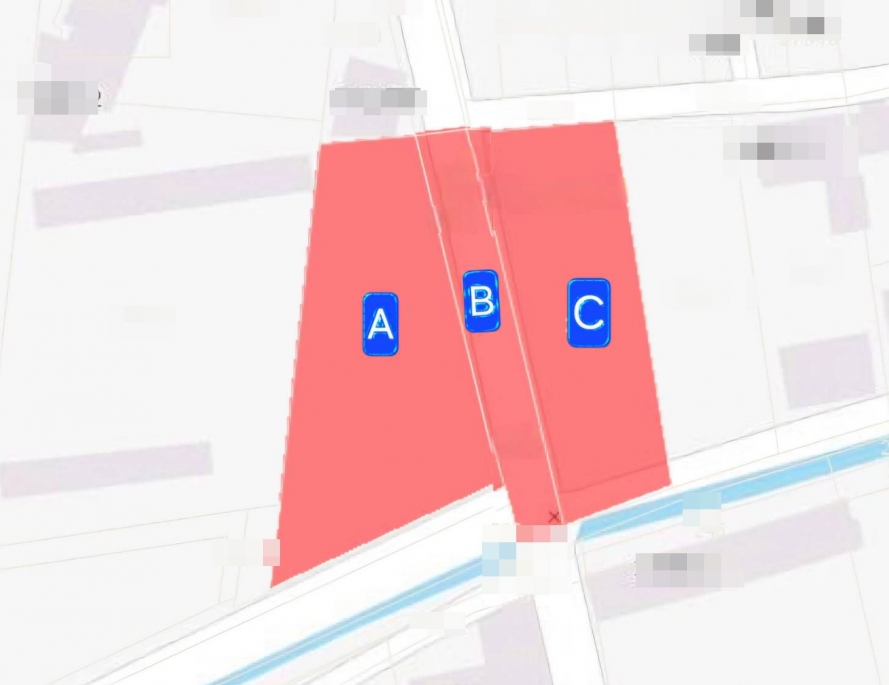 1.本案相鄰農地有A B C3筆,其中B筆為道路用地,現況已是柏油路面有排水溝,賣方3筆持分皆一起出售